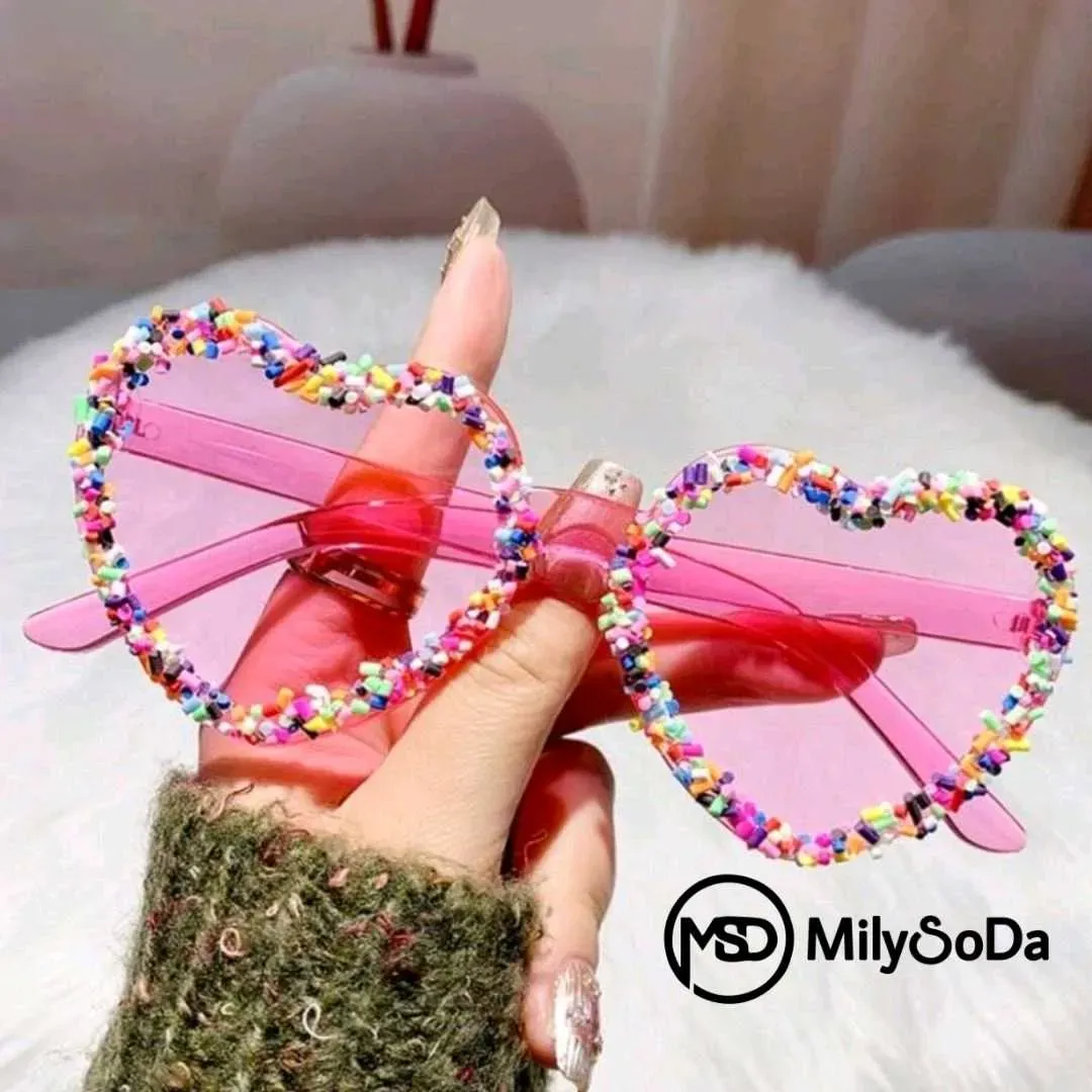 0425 Lentes Corazón con chispas multicolor. Rosado